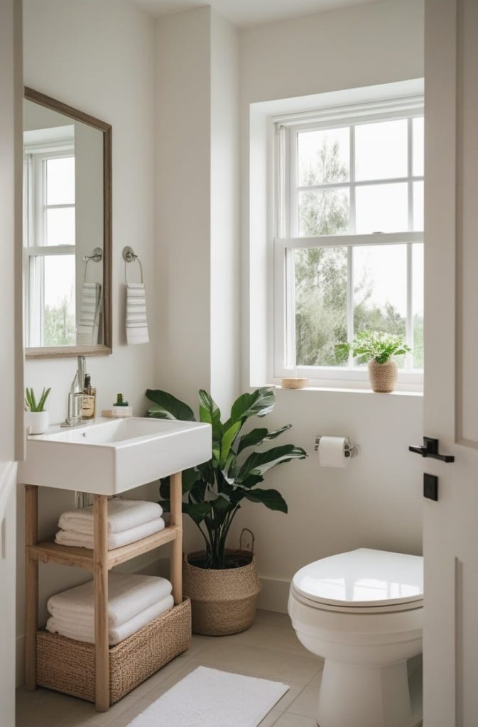 For décor, I usually include a plant, a small framed print, and neatly folded towels. This keeps the room fresh without overwhelming guests. A minimalist approach also aligns perfectly with tiny bathroom inspiration trends, where clean lines and uncluttered surfaces dominate.