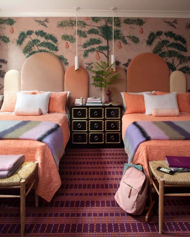 Lavender, a color often associated with serenity and calmness, seamlessly complements the bedroom’s tranquil ambiance. Beyond the conventional choice of lavender paint, various options allow you to incorporate this soothing hue into your bedroom decor. Embrace the calming essence of lavender by adorning your bed with lavender throw pillows, introducing a couple of lavender accent pieces, or even displaying art in shades of lavender. Kylie Bodiya, senior interior designer at Bee’s Knees Interior Design Studio, suggests that the bedroom is the ideal space for utilizing this gentle and serene color.