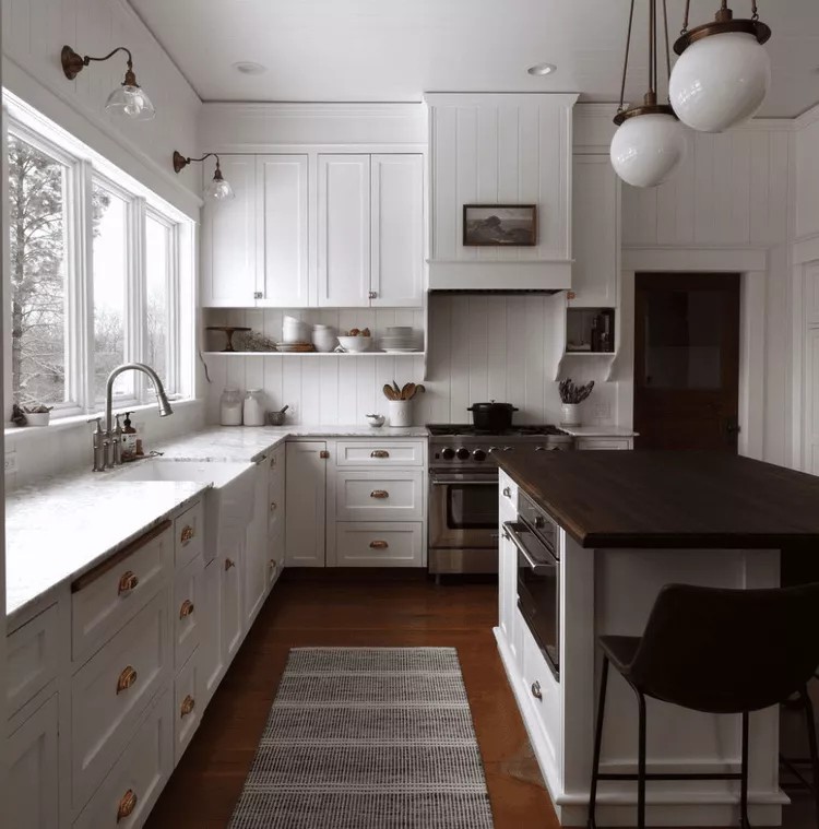 To add an eclectic touch to a sleek white kitchen, consider textured light fixtures like the woven shades from Globe Electric. These pendants not only bring character to the space but also soften the light, creating a cozy and inviting atmosphere. With a budget-friendly price of $60 each, they offer a winning combination of style and affordability.